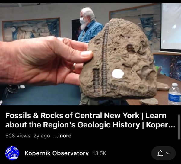 Lecture starts at 15:55. What do the different types of fossils and rocks in our area tell us about our geologic history? By Professor Bruce Oldfield SUNY Broome & Kopernick Observatory